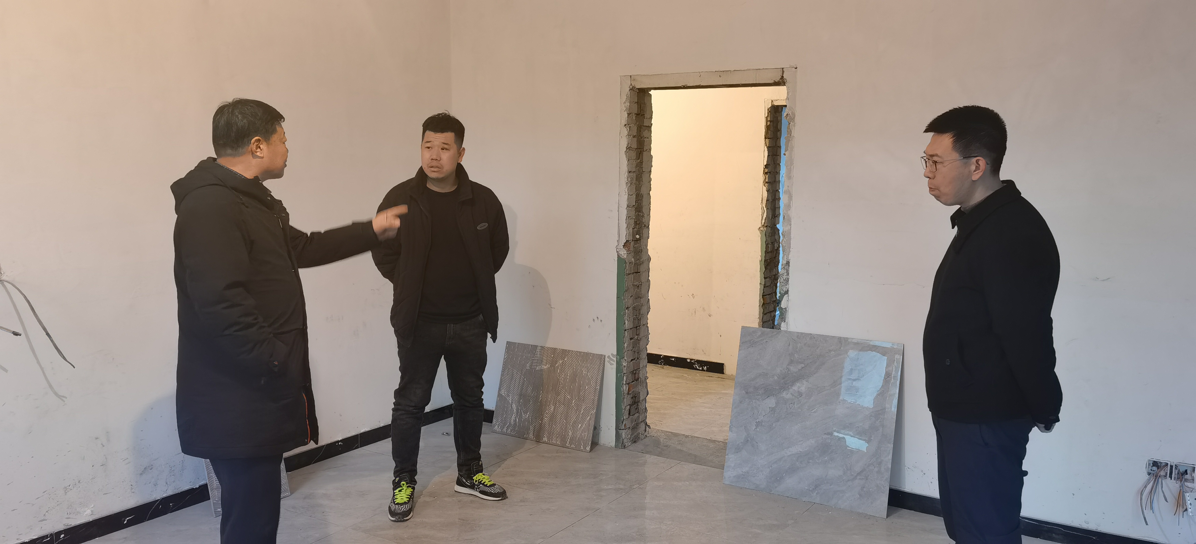 在火藥庫溝原食藥監(jiān)局辦公樓裝修施工現(xiàn)場,徐俊儒要求施工單位做好人員管理和水、電管護。進出現(xiàn)場人員要做好人員登記和溫度測量。在施工時對涉及焊接、切割等高風(fēng)險工作時,要更加注重安全防護,確保安全施工。